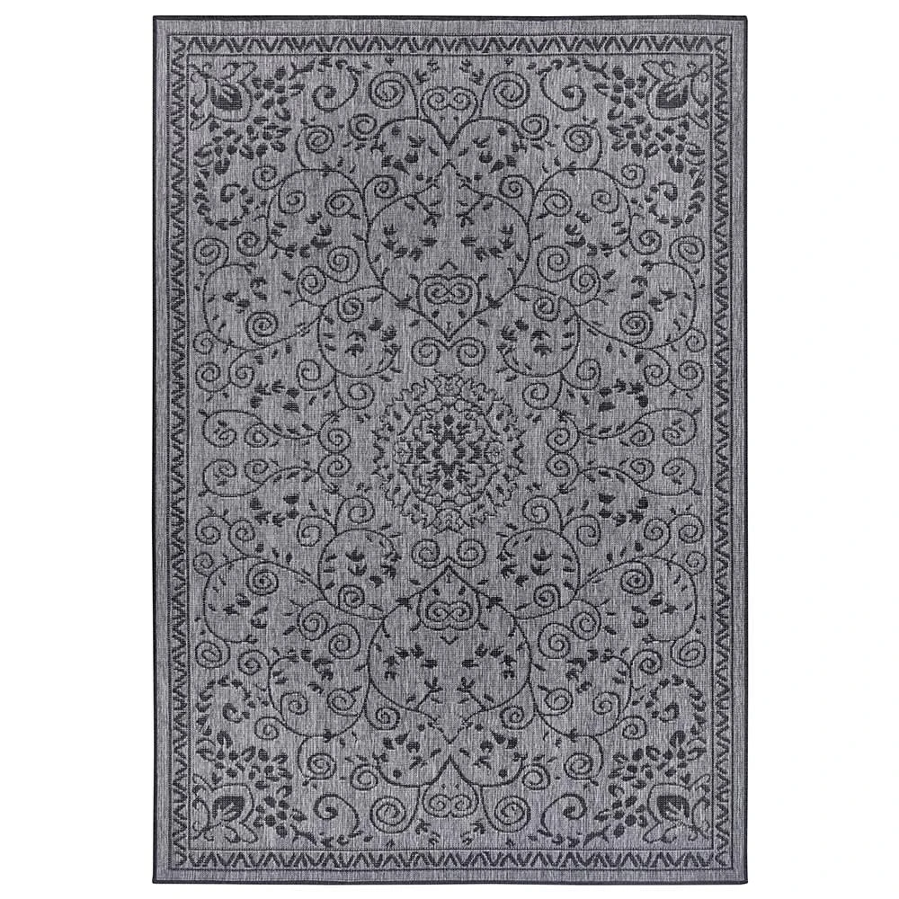 In- & Outdoor Wendeteppich Leyte Schwarz Silber