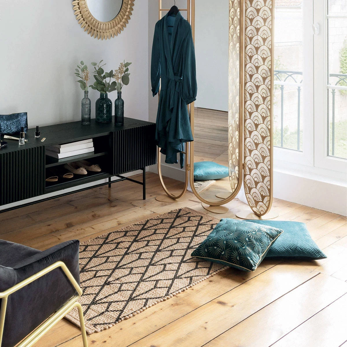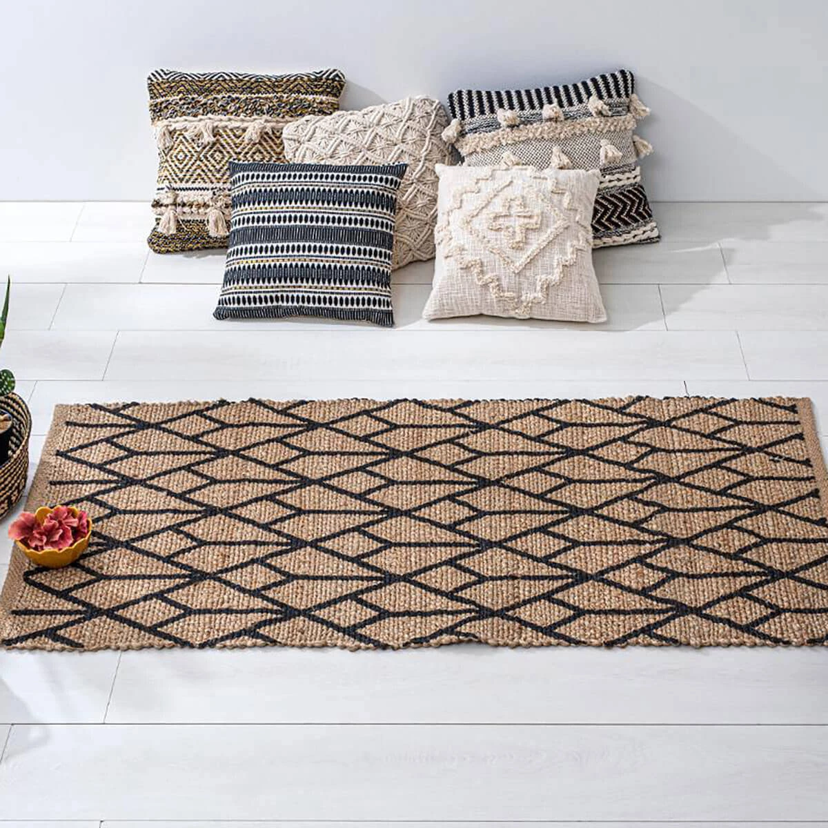 Juteteppich mit Aufdruck ist eine modische Ergänzung der bekannten und beliebten Marke Atmosphera, die für ihre hochwertigen Elemente der Heimeinrichtung und Dekoration bekannt ist. Der Teppich besteht aus natürlicher Jute, die häufig verwendet werden kann, sodass er sich perfekt für die Dekoration des Flurs oder des Korridors eignet. Das in der Produktion verwendete Material ist langlebig und verleiht dem Innenraum ein einzigartiges rustikales Boho-Klima.